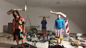 Kaj se zgodi, ko smo v norosti skupaj? Jaz sem nora, ti si nor. Mi vsi skupaj smo nori. Iz individualne norosti se pretaka zven, ki ga slišiš ti in ga slišim jaz. Torej sva so-nora? So-noriva? So-nastajava in sočasno zveniva. Slišiva isto, a ne zveniva istočasno. Če v sonornosti iščemo sozvočnost glasu in kolektivnost telesa, ki glas proizvaja, je to vprašanje skupnega. Ta se včasih izkaže v mikro skupnostih fizičnega, bolj pa v razpršenih, oblačnih medmrežjih. Tam se glasovi ne manifestirajo z zvokom, temveč z glasovi relejtanja znotraj tistega, ki ga je glas dosegel. Presečišča teh glasov se izkažejo kot valovanja, ki se, medtem ko rojijo vsak v svojo smer, razdrobljena v objavah in izjavah, ponekod ujamejo. Digitalno sozvočenje nato naseli prostor telesa, več teles, ki se trejo z ramo ob rami.