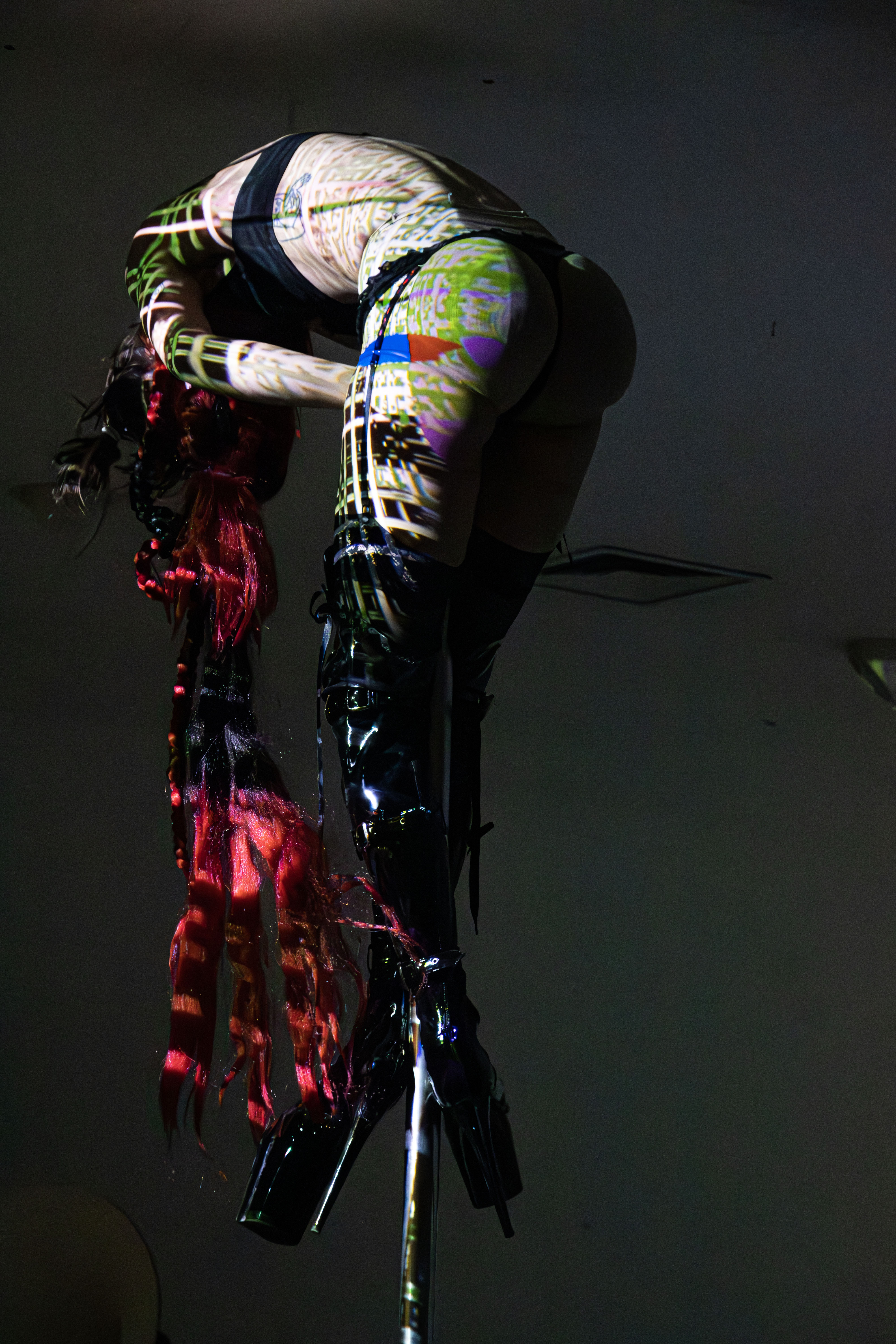 Performans prikazuje družbeni pritisk na telo, soočeno z bolečimi rituali, ki jih posameznice_ki vsakodnevno izvajajo na lastnem telesu v želji po doseganju konstruiranega lepotnega ideala. Zaradi posebnega lepotnega dodatka (visokih pet) navidez zdravo telo izgublja svojo funkcionalnost. Postane omejeno, na pogled pohabljeno in transformirano. Distorzija podobe ekstremno erotičnega telesa vnaša pomisleke o njegovi zaželjenosti in (morda) vzpostavi razmišljanje o družbenih pričakovanjih in normah.