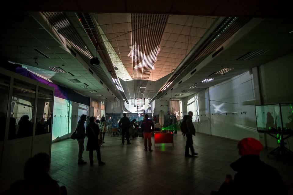 Cirkulacija 2 is an Art production collective from 2007 onwards – with ongoing activities to present the platforms for transmedial public and working situations. Art and technology and so-called cultural interfaces are pivots of communication – along with aesthetic expression. With us the sound is the connecting tissue – the basic abstract content. At the Art’s Birthday 2015 situation the three C2 participants have made aestethic decisions on the nature of sounds in the manner that they select/ define the sources of sound. Electricity, mechanics, semantics, that tell the story. A glass of wine is not the same as glass of milk.. What to select: exuberation or cure?