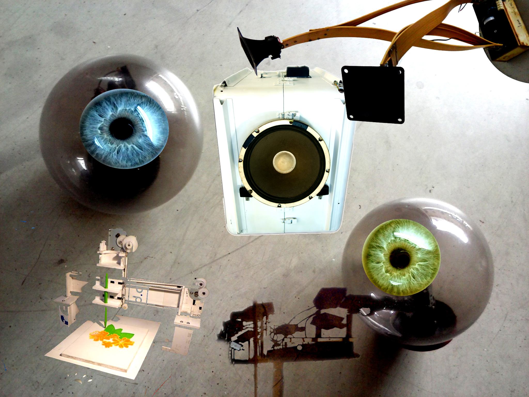 We invited extremely dedicated international artists : Karl Heinz Jeron (DE/ Berlin), Ewa Justka (Poland/GB/London), Adam Donovan (Australia /  Zűrich) and Lars Vaupel (DE/ Hamburg), that have greeted the possibilities of Robotanica exhibition concept. Especially the younger artists invited are at the peak of their activities, while the matures are estebleshed as for-runners of cybernetic arts. This should keep some distance to the usual trendy-hype approaches. The artists will provide their moving objects / devices, simple or complex robotized installations, simple audio-video synthesizers, electromagnetic receivers, scanners, etc.