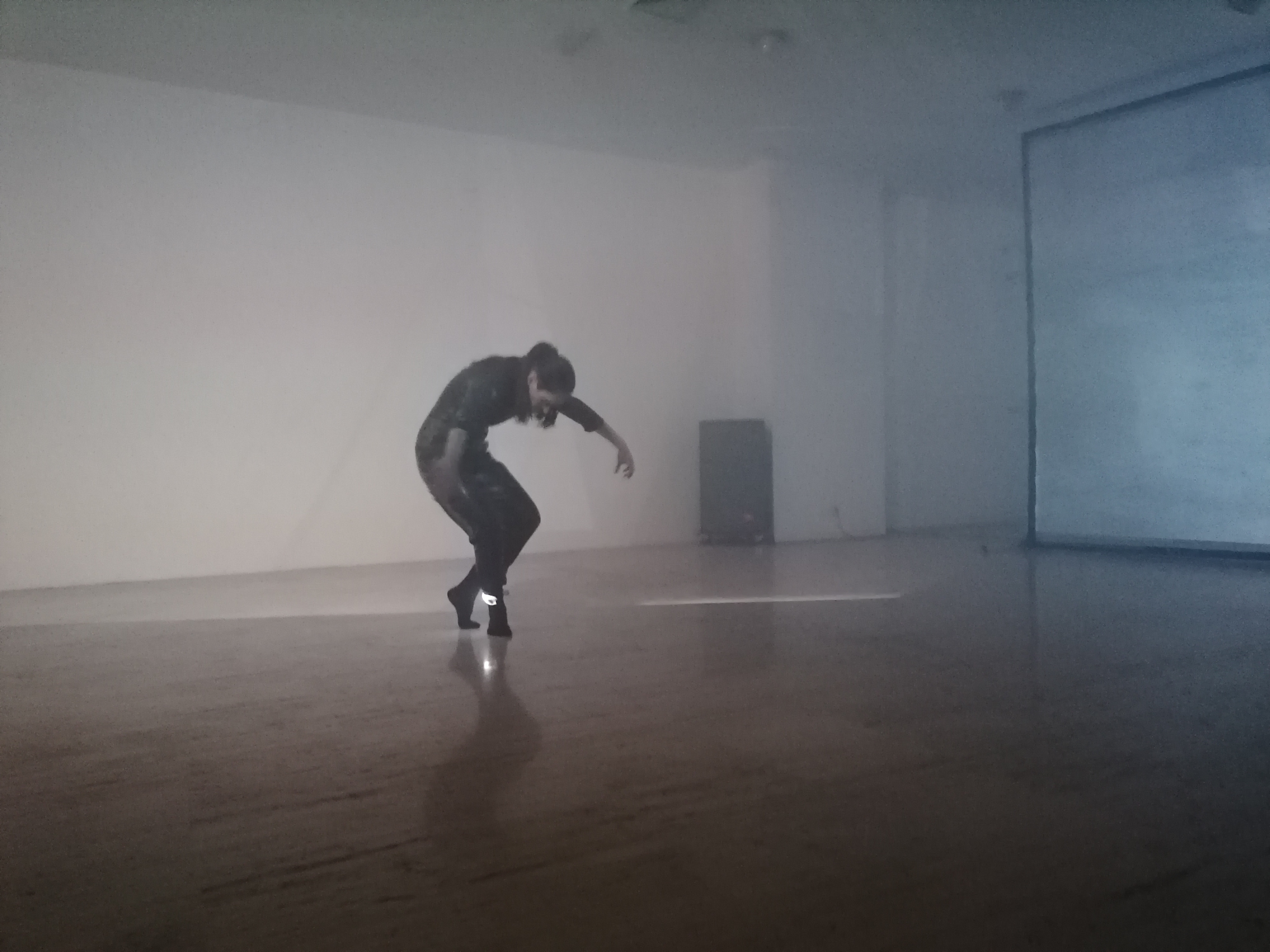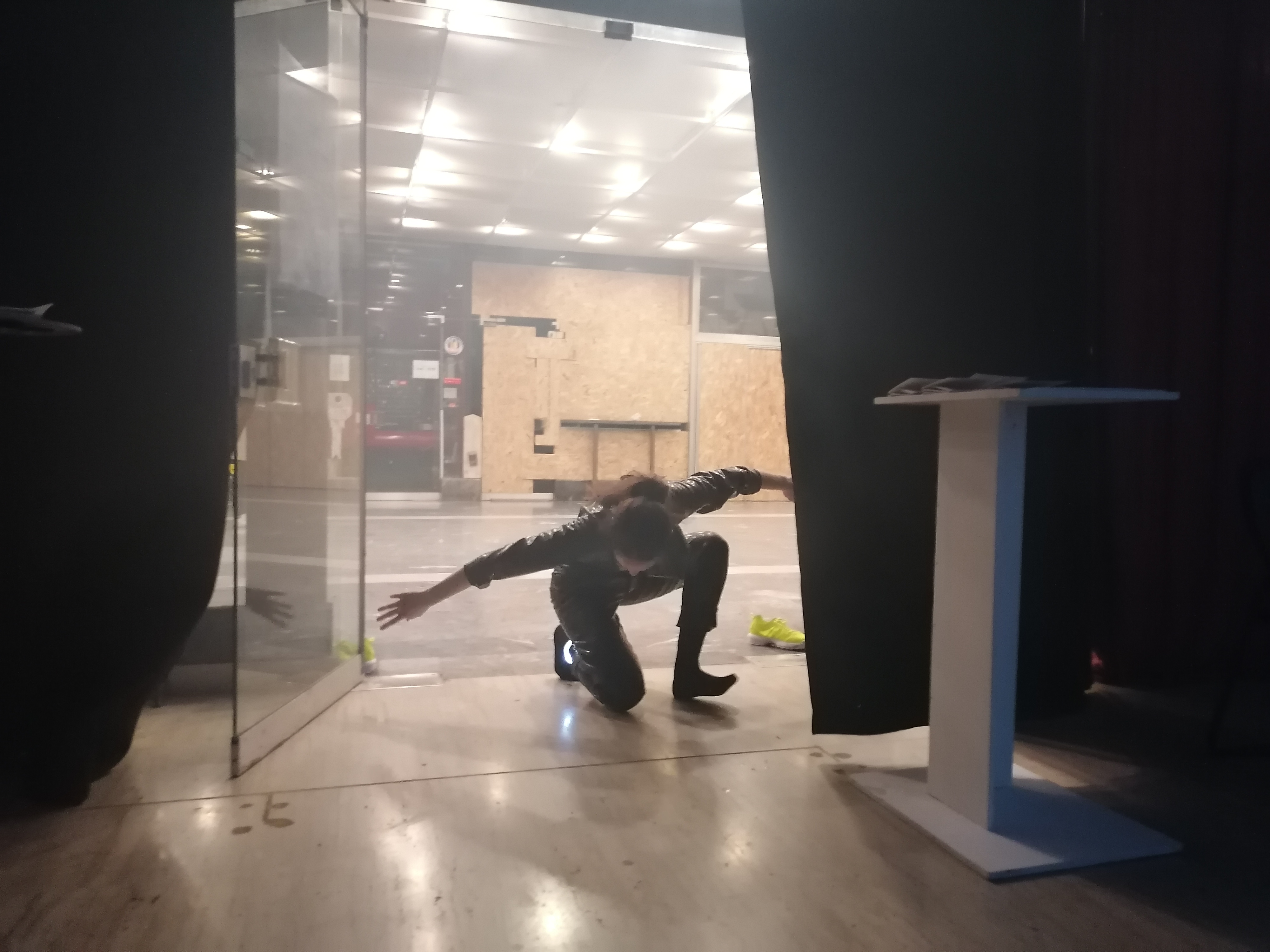The accompanied sound was gathered with field recordings at the building sites, intertwined with electromagnetic sounds from Cirkulacija 2. It will be used as a live composition element via sensors responding to the movement.