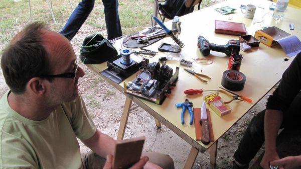 V okviru kreativnih delavnic v prvih dneh lahko tudi ponudimo izgradnjo preprostih senzorskih instrumentov – tereminov, ki so že pripravljeni (Borut Savski). Cena enega kita je 10 EUR – to je torej “udeležnina”.