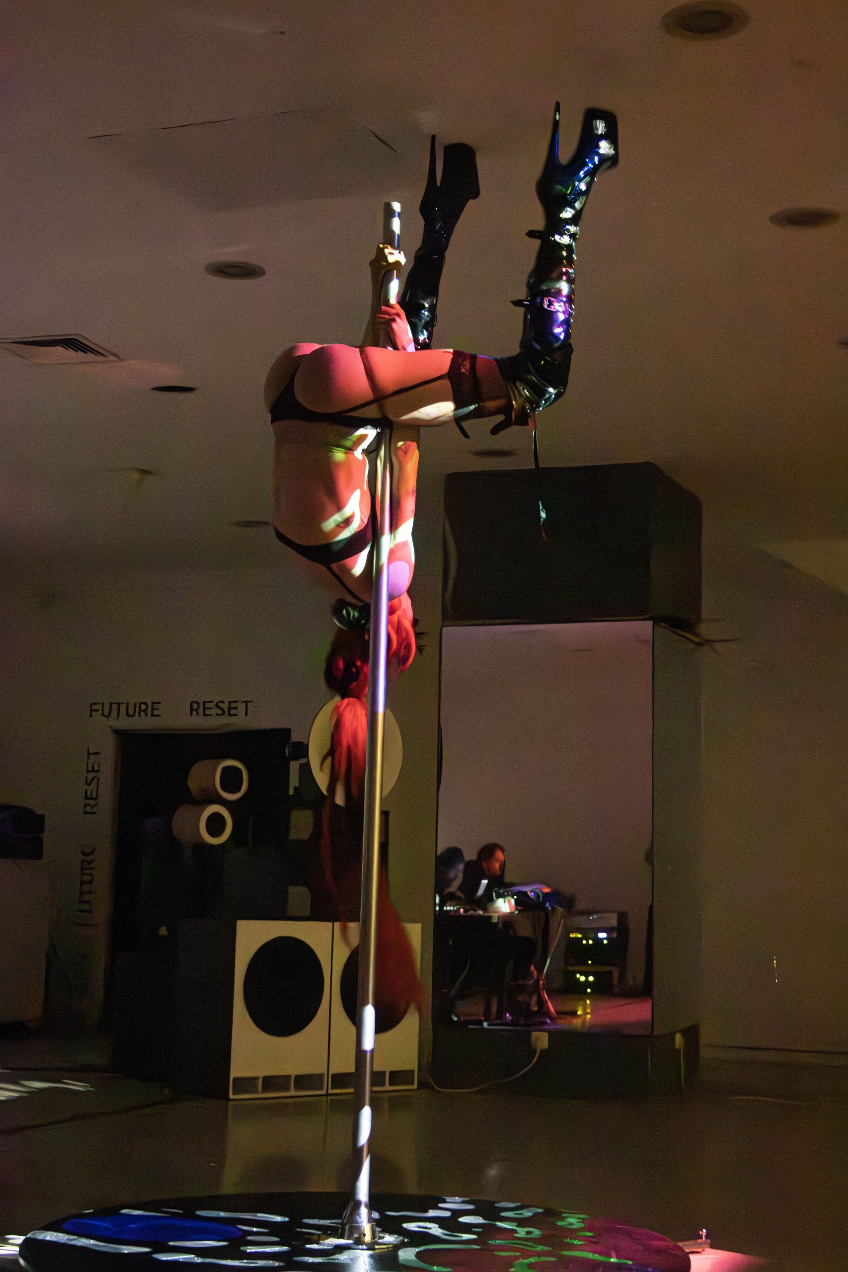 Performans prikazuje družbeni pritisk na telo, soočeno z bolečimi rituali, ki jih posameznice_ki vsakodnevno izvajajo na lastnem telesu v želji po doseganju konstruiranega lepotnega ideala. Zaradi posebnega lepotnega dodatka (visokih pet) navidez zdravo telo izgublja svojo funkcionalnost. Postane omejeno, na pogled pohabljeno in transformirano. Distorzija podobe ekstremno erotičnega telesa vnaša pomisleke o njegovi zaželjenosti in (morda) vzpostavi razmišljanje o družbenih pričakovanjih in normah.